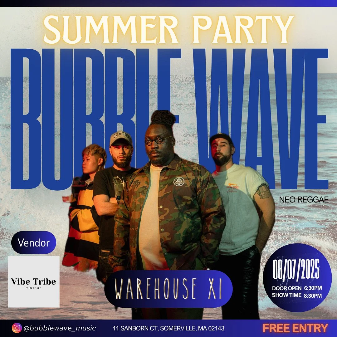 Bubble Wave is a Boston-based neo-reggae collective blending reggae, R&B, jazz, and funk into a unique sonic experience. Bubble Wave is more than just a band—it’s a creative movement, bringing together musicians and artists to elevate the energy in any space, from intimate lounges to large-scale festivals. With a dynamic lineup of seasoned professionals from Boston’s music scene, Bubble Wave adapts to any setting, providing a live experience akin to a DJ’s versatility—but with the authenticity and vibrance of a live band. Whether it’s a high-energy festival, a vibey lounge event, or an immersive music experience, Bubble Wave is built to create the perfect sound for any moment.